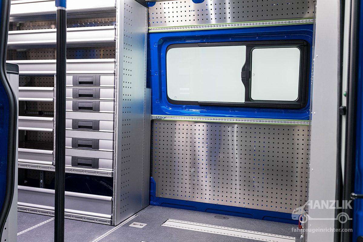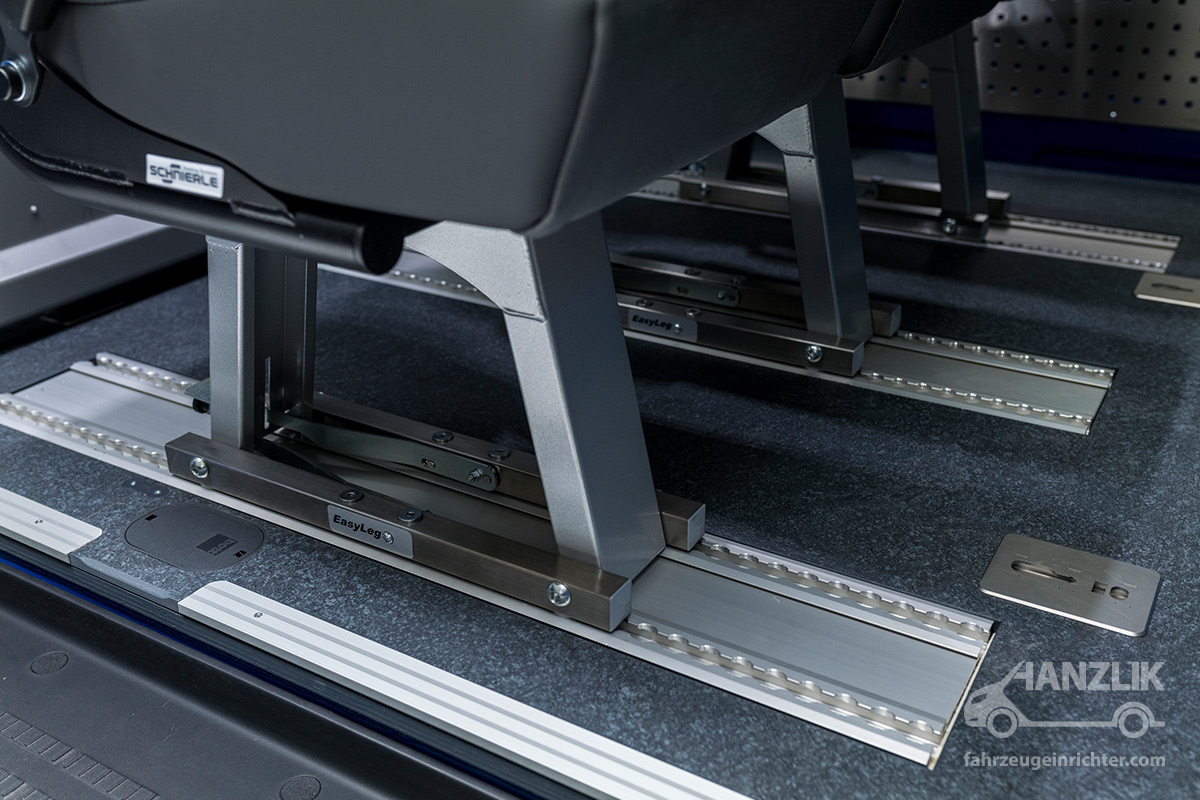 Und schon steht der komplette Laderaum zur Verfügung! Beim nächsten Einsatz müssen 5 Mann zur Baustelle gebracht werden, also Trennwand zurück an die C-Säule, Sitze rein - und los geht’s. Das Ganze funktioniert werkzeuglos in nur wenigen Minuten!