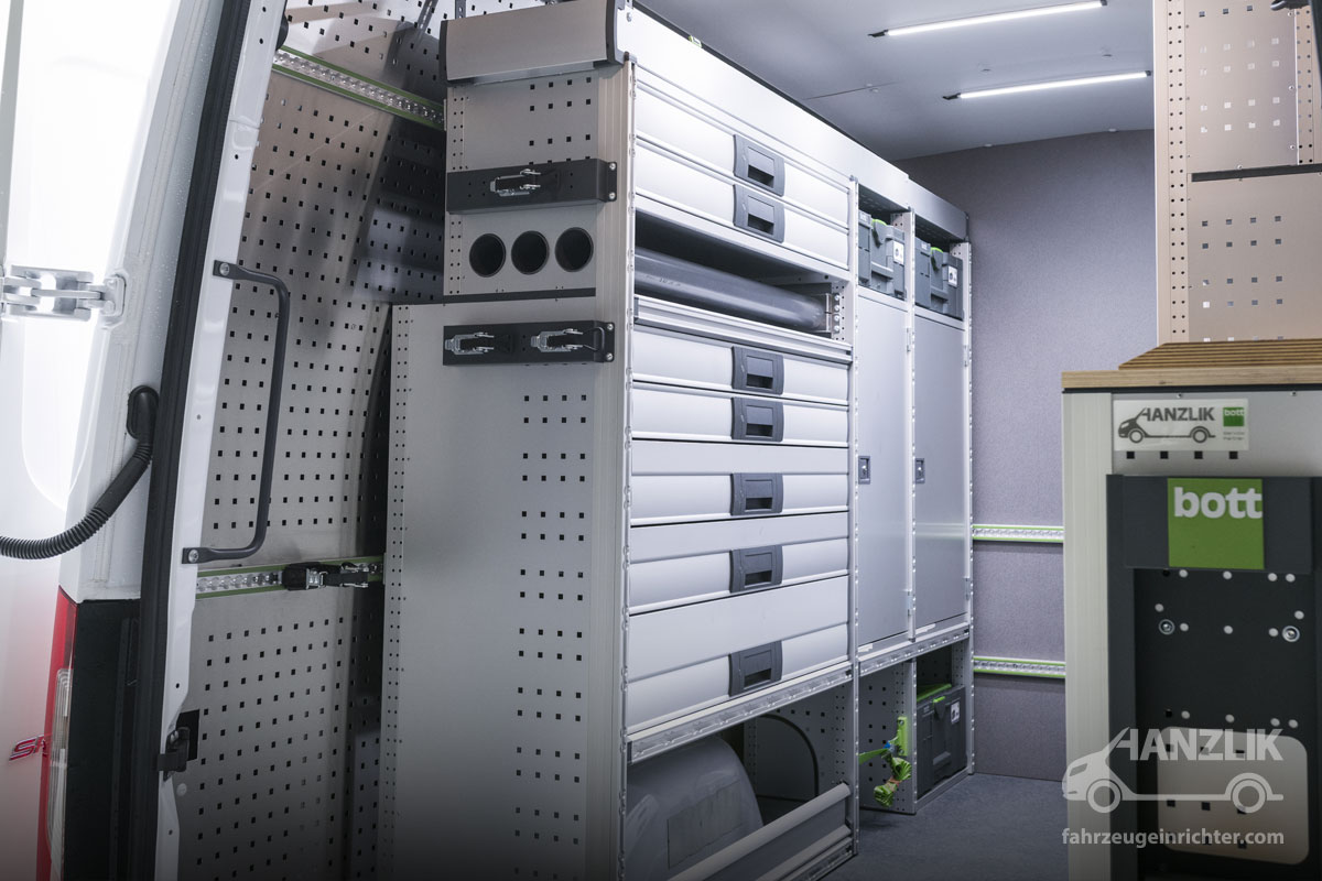 Im nächsten Schritt wurde Maß genommen. Alle Werkzeuge und Gerätschaften des Kunden wurden dokumentiert und exakt den passenden Schubladen und Ablagen zugeordnet. Nichts blieb dem Zufall überlassen. In einer vorab durchgeführten Baubesprechung beschrieb der Kunde sämtliche Arbeitsschritte, die direkt in die Planung und Umsetzung eingeflossen sind.