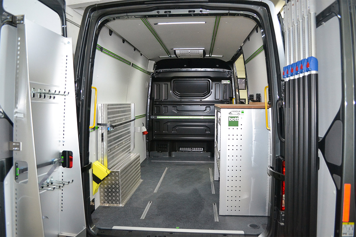 Für einen Kunden in der Branche Akten- und Datenvernichtung hat unser Verkaufsberater Lutz Dielmann die komplette Einrichtung eines VW Crafter LH3H3 geplant. Wichtig war bei dieser Ausstattung die Energieversorgung für die mobile Arbeit sowie die richtige Belüftung. Dies ist ein Aspekt, der bei Arbeiten mit Stromquellen innerhalb des Fahrzeuges besondere Aufmerksamkeit verdient. So kann sicheres Arbeiten im Laderaum des Crafters gewährt werden.