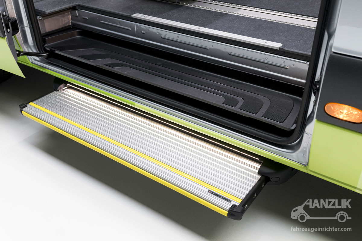 Um Ihnen den Ein- und Ausstieg so bequem wie möglich zu gestalten, sind Heck- und Seitentrittstufen verbaut. Diese erleichtern den Zugang und schonen gleichzeitig Ihre Knie.