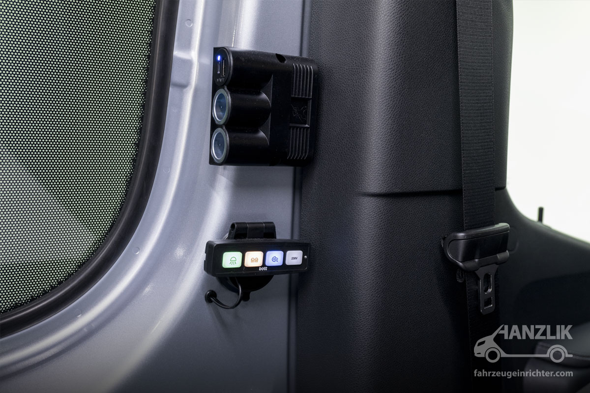 Unser Vorführfahrzeug verfügt über einen Wechselrichter sowie eine Calix-Außeneinspeisung. Ergänzt durch 12V-Kombidosen und helle LED-Airlineschienen am Dach sind Sie bestens ausgestattet. Dank der mitgeführten Accubox sind wir nahezu 24/7 autark.